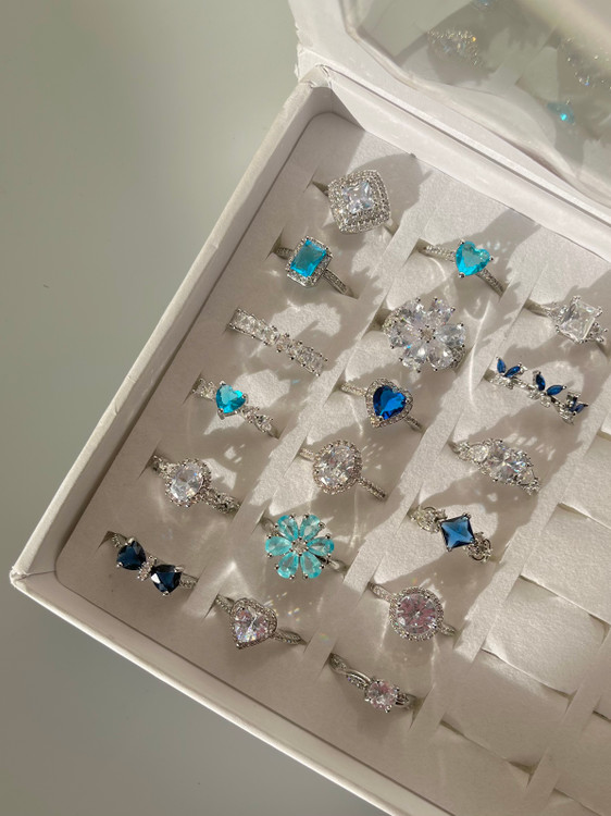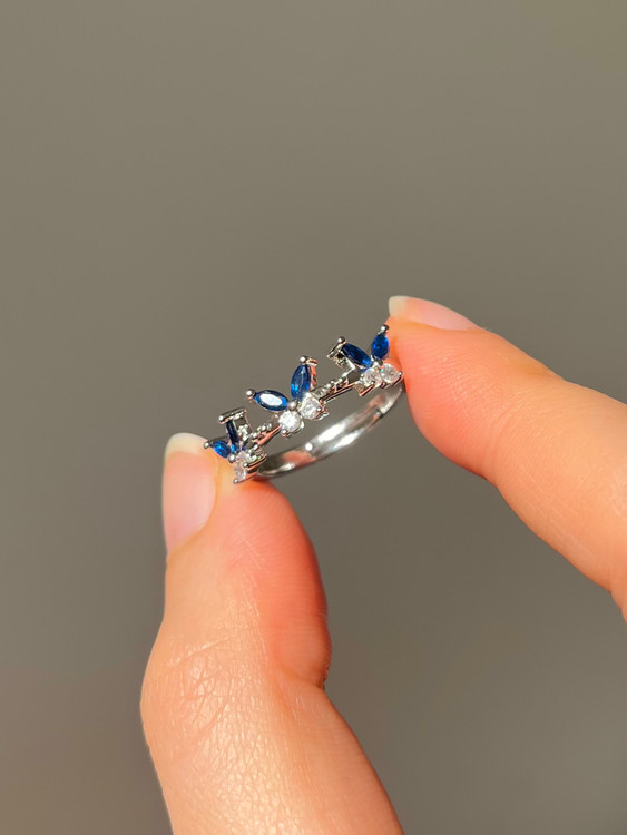 انگشتر جواهری آبی و سفید