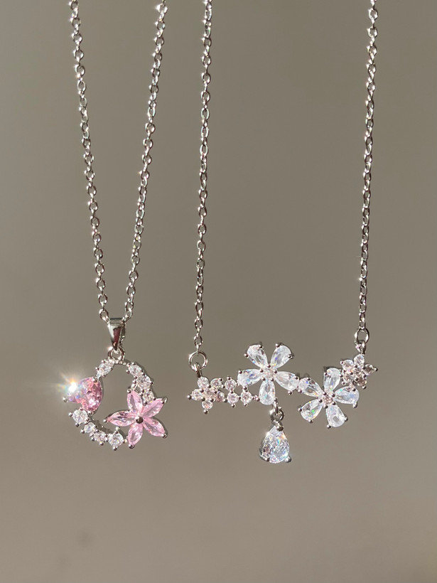 / گردنبند شکوفه صورتی / گردنبند شکوفه سفید