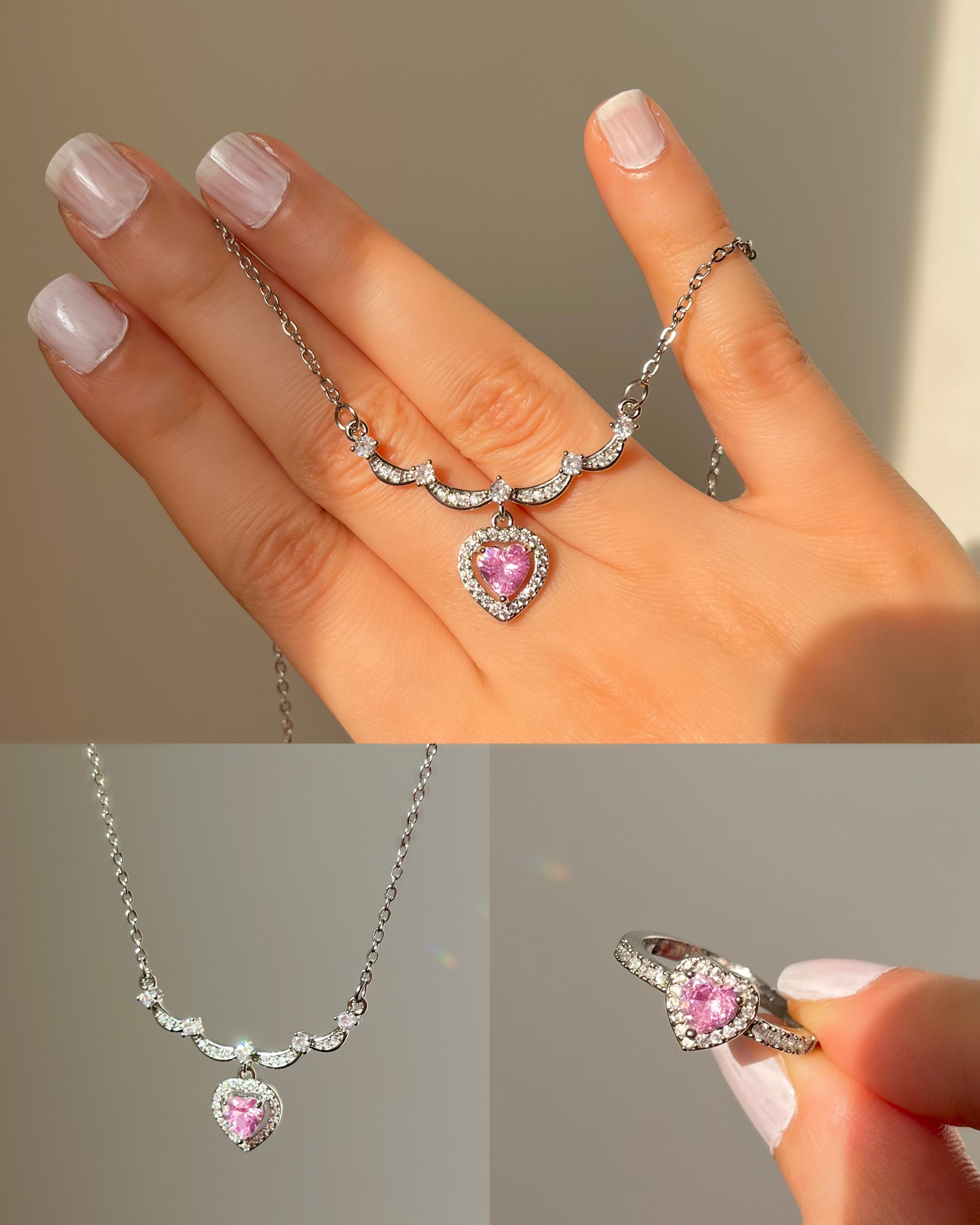 گردنبند قلب و زحل 🪐💞 • گردنبند ها هر کدوم جدا هستن • انگشتر رو هم به صورت جداگانه میتونید تهیه و ست کنید💫