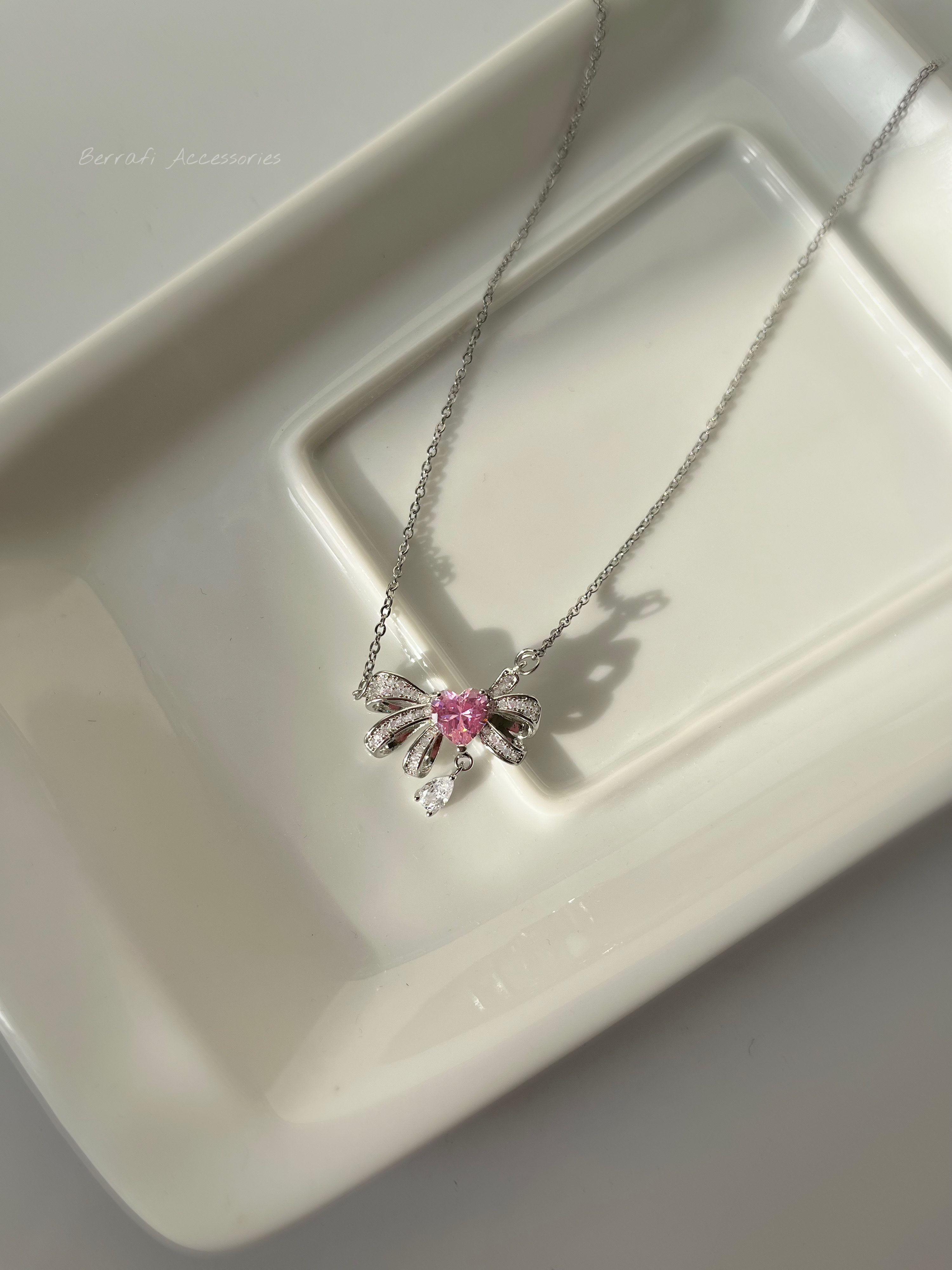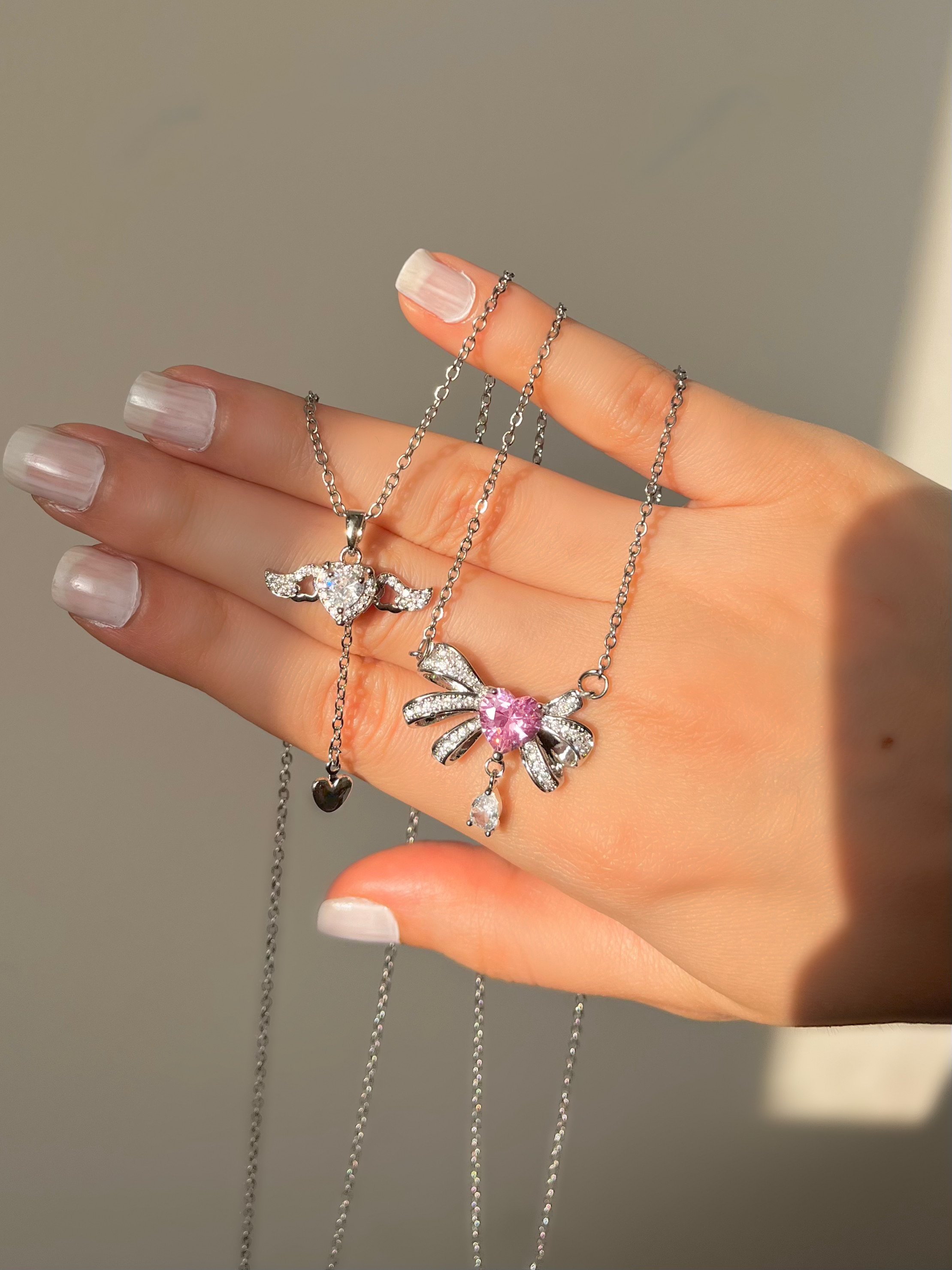 گردنبند قلب با بال فرشته و قلب صورتی👼🏻💞